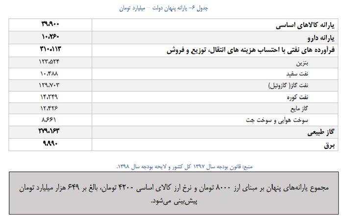در این مورد معاون اول رییس جمهوری هفته گذشته پیش اعلام کرد: دولت ایران یارانه‌های پیدا و پنهان زیادی دارد. بیش از یک میلیون و ۴۰۰ هزار میلیارد تومان یارانه پنهان و بیش از ۳۰۰ هزار میلیارد تومان یارانه آشکار پرداخت می‌کنیم.