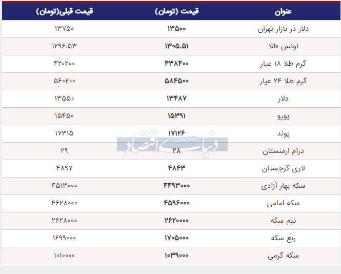 دلار در بازار امروز تهران، به ۱۳,۵۰۰ (سیزده هزار و پانصد ) تومان رسید که نسبت به روز قبل ، کاهش ۱.۸۵ درصدی داشته است.