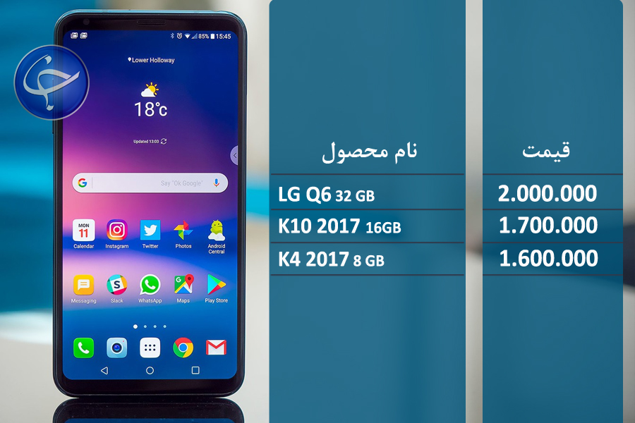 شرکت ال‌جی نیز مانند نوکیا در گذشته جزو قدرتمندترین شرکت‌های تولید کننده تلن همراه در جهان محسوب می‌شد که در سال‌های اخیر با ورود برند‌های چینی به بازار کمی افت داشته و مانند گذشته مدل‌های پرفروشی را تولید نمی‌کند. در حال حاضر سه مدل G6، K10 و K4 در بازار یافت می‌شودکه سری k از تولیدات سال‌های پیشین ال‌جی هستند. در ادامه آخرین قیمت تلفن‌های هوشمند شرکت ال‌جی در بازار را مشاهده می‌کنید: