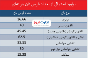 به استناد این محاسبات در بهترین حالت هرفرد بتواند روزانه یک قرص نان تافتون یا دو قرص نان لواش بخورد. در این چارچوب، خوردن نان بربری یا سنگک تنها تا نیمی از ماه مقدور است و برای همین خریدشان حالتی اعیانی، تجملاتی و لاکچری پیدا خواهد کرد.