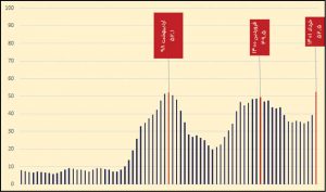 این گزارش میافزاید از فروردین سال ۹۵تا خرداد امسال مردم ایران شاهد ۳موج تورمی بودهاند؛ بهگونهای که نرخ تورم نقطه به نقطه از ۷درصد در فروردین ۱۳۹۷روند پرشتابی را تجربه کرد و در اردیبهشت سال ۹۸به اوج خود یعنی ۵۲.۱درصد رسید.