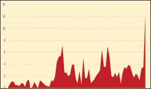 از زمان انتشار نرخ تورم توسط مرکز آمار ایران در فروردین ۱۳۹۵تاکنون، بالاترین سرعت رشد تورم ماهانه در خرداد امسال ثبت شده و برای نخستین بار در ۷۵ماه گذشته است که نرخ تورم ماهانه دورقمی شده و به ۱۲.۲درصد رسیده است. البته دولت انتظار دارد با اجرایی شدن برنامه هوشمندسازی یارانه کالاهای اساسی، فشار تورم بر دهکهای فقیر و متوسط کاسته شده و سرعت رشد قیمتها در ماههای آینده کمتر شود.