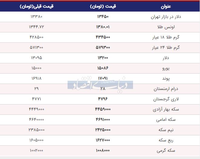 خبرهای فوری: قیمت دلار در بازار به ۱۳,۴۵۰ (سیزده هزار و چهارصد و پنجاه ) تومان رسید، در مقابل قیمت طلا و سکه هم افزایش یافت.