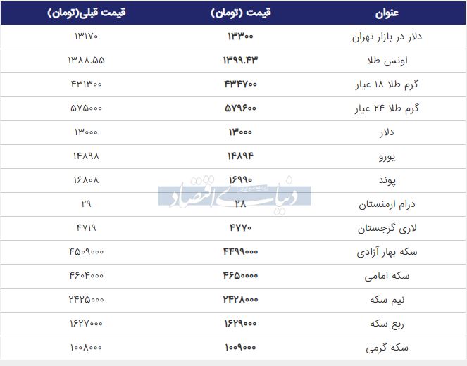 دلار در بازار امروز تهران، به ۱۳,۳۰۰ (سیزده هزار و سیصد ) تومان رسید که نسبت به روز قبل ، افزایش ۰.۹۷ درصدی داشته است.