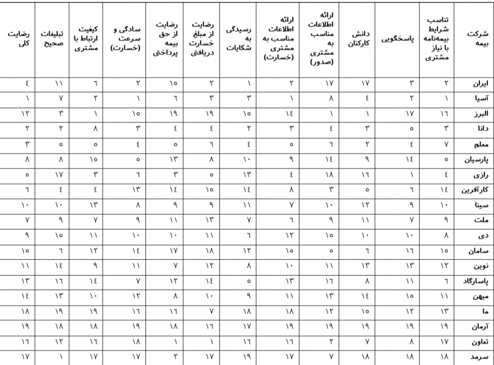 رتبه رضایتمندی مشتریان در بیمه شخص ثالث