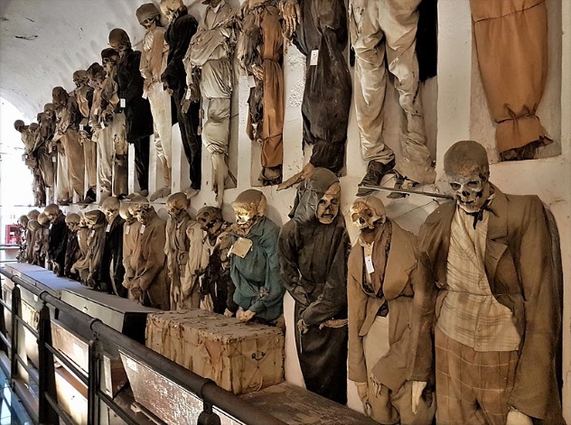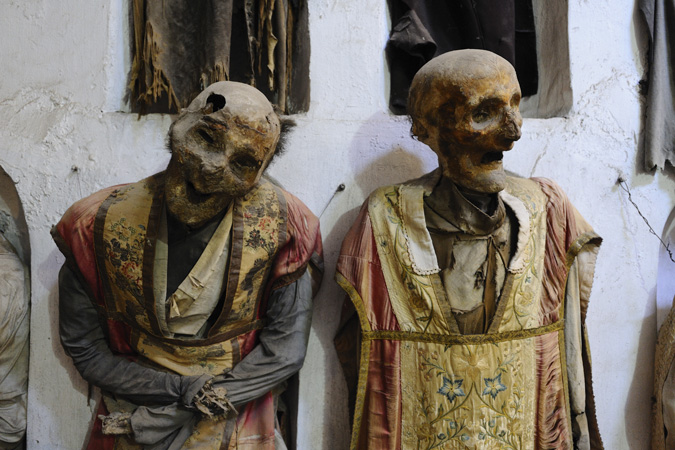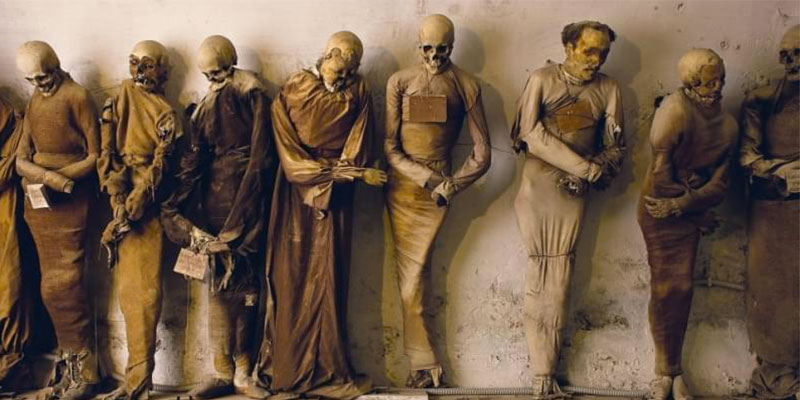 اینجا محلی در حومه پالرمو در سیسیل است که بیش از ۸۰۰۰ جسد مومیایی شده به نمایش گذاشته شده است. این اجساد به قرن شانزدهم برمی‌گردد. زمانی که راهبه‌های کلیسای کاپوچین به فضای بیشتری برای گورستان خود نیاز داشتند؛ بنابراین اجساد را از گورستانی به گورستان دیگر منتقل کردند و به شکل مومیایی درآوردند.