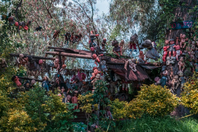 در مکزیک مکانی به اسم کانال مخفی «هوچیمیکو» (Xuchimico) در نزدیکی مکزیکوسیتی است که به جزیره عروسک‌ها معروف شده؛ جزیره‌ای که از هر درخت آن تعداد زیادی عروسک با شکل‌های ترسناک آویزان شده است. گفته شده سال‌ها پیش دختربچه‌ای در کانال نزدیک خانه Don Julian Santana جلوی چشم‌هایش غرق شده است و او نتوانست برایش کاری کند. از آن به بعد او هر روز از زباله‌دان‌های شهر عروسک جمع می‌کرد و به باغی می‌آورد. مرد مکزیکی قصد داشت با آویزان کردن عروسک‌ها روح دخترک را از خودش راضی کند. بعد از او هم دیگر گردشگر‌ها دست بردار نیستند و هر کدام عروسکی را به این جزیره می‌آورند و روی درخت آویزان می‌کنند.