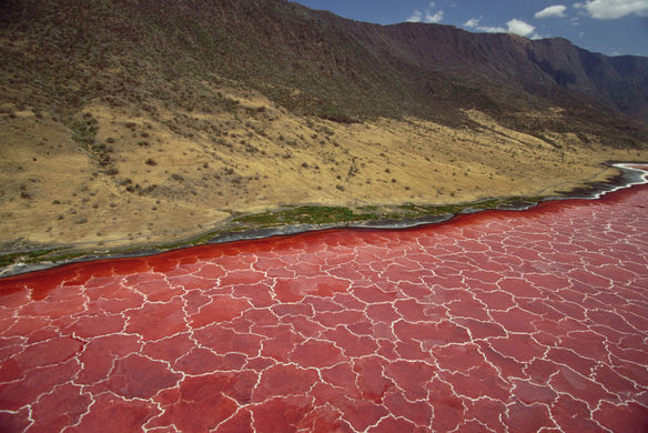 دریاچه‌ ناترون رنگی قرمز دارد و دمای آن نیز بسیار بالا است. دلیل قرمز بودن آب ناترون این است که دمای آب دریاچه بسیار بالا است. آب این دریاچه بسیار شور است و درجه حرارت آن بسیار بالاست. این دریاچه برای پرنده‌ها بسیار خطرناک است، اما برای فلامینگو‌ها شرایط بسیار مناسب و مطبوعی دارد. درجه حرارت این آب گاهی حتی به بالای ۴۰ درجه سانتی گراد هم می‌رسد و به دلیل نیز سطح بالای تبخیری که در این دریاچه وجود دارد، ph دریاچه‌ ناترون نزدیک به ۱۲ است. افزایش سطح نمک آب در نهایت منجر به این امر می‌شود که نوعی از میکروب‌های طبیعی که حاصل عملیات پیچیده‌ای از میکروارگانیسم‌ها و به محیط های‌تر و شور علاقه‌مند هستند، می‌باشند. در نهایت این فعالیت‌ها، این میکروارگانیسم‌ها به نوعی باکتری تبدیل می‌گردند که غذای مصرفی خود را از راه فتوسنتز همچون گیاهان تامین می‌نمایند و در نتیجه آب دریاچه قرمز رنگ می‌شود.