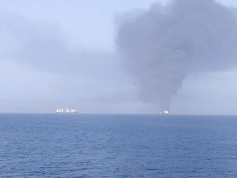 یکی از دو نفتکش هدف قرار گرفته در حال غرق شدن است