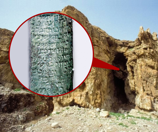 آنچه در تصویر میبینید یک طومار مسی است که در غاری از دریای مرده پیدا شده و تصور میشود نقشه یک گنج یهودی باستانی باشد. این طومار نقشه گنجی است که مردم را به یک گنجینه مذهبی ارزشمند هدایت میکند. برخی کارشناسان اطمینان دارند که نقشه گنج معبد دوم یهودی است که در سال ۷۰ میلادی فرو ریخت. کارشناسان توانسته اند بخشهای زیادی از نقشه را رمزگشایی کنند، اما، چون خیلی دقیق است، مثل «گردش به چپ در کنار آبنما» یافتن گنج غیرممکن است، چون این مکانها یا از بین رفته اند یا زیر خاک هستند.