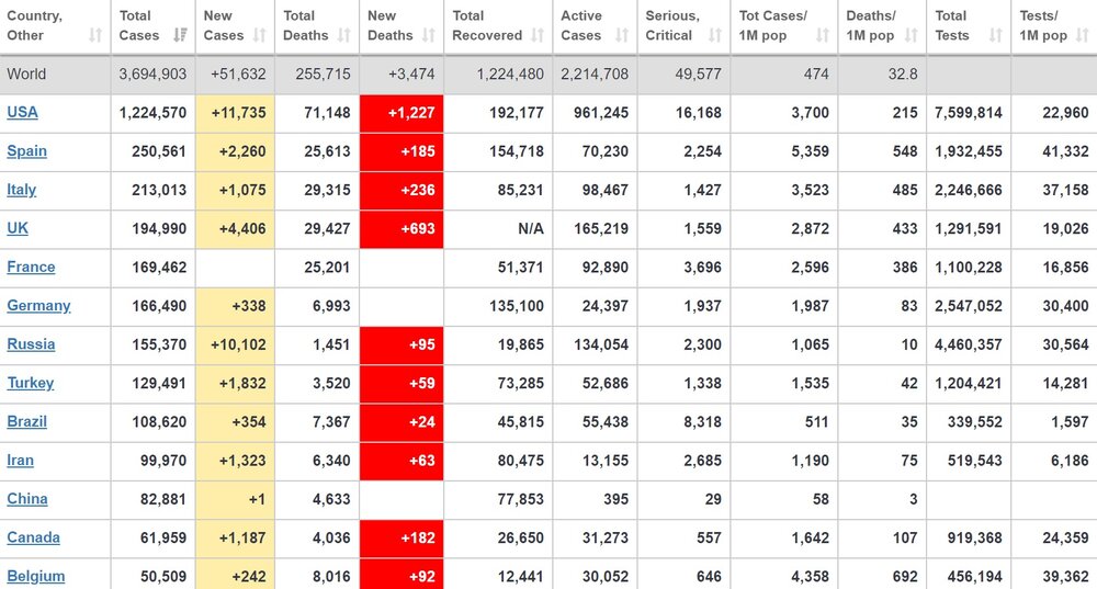 به گزارش بخش بین المللی سایت خبرمهم ، کشورهای آمریکا با ۱۱,۴۸۹، روسیه با ۱۰,۱۰۲، انگلیس با ۴,۴۰۶ و اسپانیا با ۲,۲۶۰ مورد، بیشترین شمار مبتلایان به کروناویروس را در ۲۴ ساعت گذشته داشته اند.