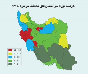نرخ تورم ۱۲ ماهه در مرداد ماه امسال به ۲/ ۴۲ درصد رسید. کران بالای تورم، استان کردستان با نرخ ۸/ ۵۰ درصدی بود. در حالیکه در مرداد ماه ۹۷، بیشترین نرخ تورم مربوط به استان کرمانشاه و معادل ۵/ ۱۲ درصد گزارش شده بود. در نتیجه ماکزیمم تورم در سال جاری، ۳/ ۳۸ واحد درصد نسبت به زمان مشابه سال قبل رشد کرد. از آن طرف در کران پایین تورم نیز تغییرات گستردهای رخ داده است. بیشترین تورم ۱۲ ماهه در مرداد ماه سال قبل، در استانهای سیستان و بلوچستان و بوشهر تجربه شده و برابر با ۴/ ۷ درصد بود. در حالیکه کران پایین تورم در مرداد امسال، به استان قم هجرت کرد که برابر با ۷/ ۳۵ درصد بوده است. در نتیجه در مینیمم تورم استانی نیز ۳/ ۲۸ درصد جهش مشاهده میشود. میتوان گفت که با رشد قیمتها در طول یک سال گذشته، استانهای کردستان، چهارمحال و بختیاری و ایلام بیشترین ضربه را خورده و بازندگان اصلی بیثباتی اقتصادی بودهاند. چرا که نرخ تورم میانگین در این استانها، بیش از ۵۰ درصد در مرداد ماه بوده است.