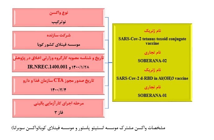 انستیتو پاستور ایران از شروع پاندمی کرونا، موضوع تولید واکسن مشترک با کشور کوبا را آغاز کرد. این واکسن حاوی پروتئین نوترکیب از ناحیه RBD ژنوم ویروس کروناست؛ برای این واکسن، رژیم دو نوبته(با و بدون دوز بوستر یا یادآور) تعیین شده است که بعد از گذراندن موفق فاز۱ و ۲، وارد فاز سوم کارآزمایی بالینی شده است. مرحله سوم کارآزمایی این واکسن تصادفی شده با گروه پلاسبو و دو سوکور در۲۴ هزار نفر جمعیت ۱۸ تا ۸۰ سال در کشور و ۴۴ هزار نفر در کوبا در حال انجام است .