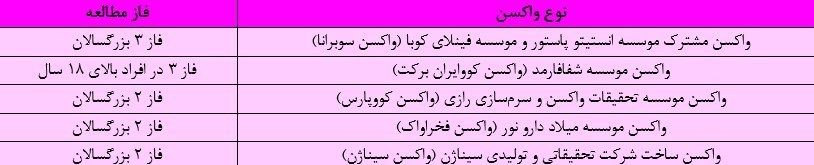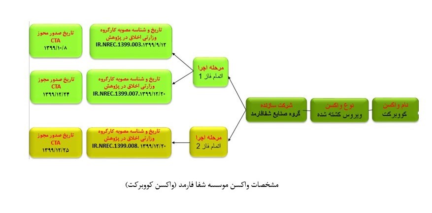 ۲. واکسن موسسه شفا فارمد (واکسن کووبرکت): فاز ۳ در افراد بالای ۱۸ سال