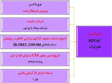 مطالعه این واکسن، برای بررسی بیخطری، ایمنیزایی و انتخاب دوز مناسب واکسن غیرفعال شده کرونا (MIVAC) انجام شده و این مطالعه در جمعیت سالم بزرگسال ۵۵-۱۸ ساله بهصورت کارآزمایی بالینی تصادفی شده، دوسو کور با کنترل پلاسبو در حال انجام است و فاصلههای دو دوز نیز تقریباً ۲ و ۳ هفته در نظر گرفتهشده است.