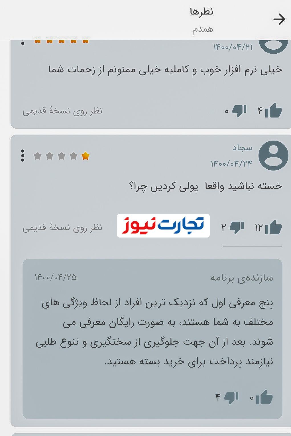 خبرمهم: مراجعه به برنامه کافه بازار نشان میدهد که تاکنون حداقل ۵۰ هزار نفر اپلیکیشن همسریابی همدم را نصب کردهاند. با این حساب اگر همه این افراد موفق به استفاده از این اپ شده و بسته ۳۰ تایی را بخرند، درآمد موسسه تبیان از فروش بستهها حدود ۴ میلیارد و ۸۰۰ میلیون تومان میشود!