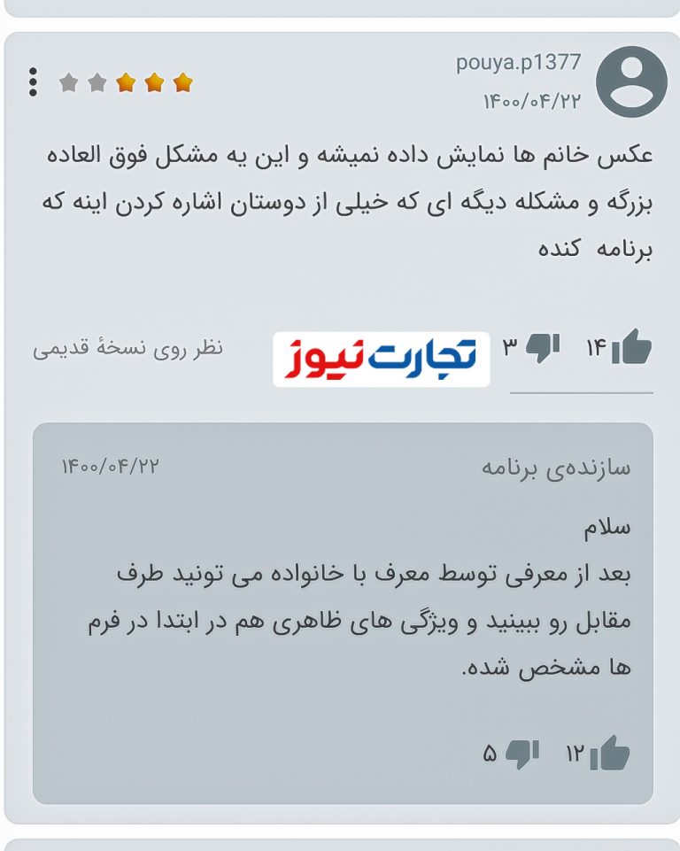 هزینههای گزافی که سازندگان این برنامه از کاربران میگیرند در حالی که برنامه باگهای زیادی دارد. نکته دیگر این ماجرا اینجاست که عکس کاربران در این برنامه قابل مشاهده نیست. آنطور که سازندگان در پاسخ یکی از کاربران نوشته بعد از معرفی توسط معرف و با خانواده امکان دیدن گزینه مورد نظر وجود دارد!
