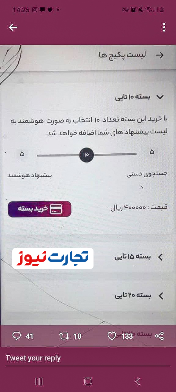 اما اگر کاربری تعداد گزینههای بیشتری بخواهد باید پول بیشتری هم پرداخت کند! یکی از کابران میگوید برای بسته ۳۰ تایی حدود ۱۰۰ هزار تومان پرداخت کرده است.