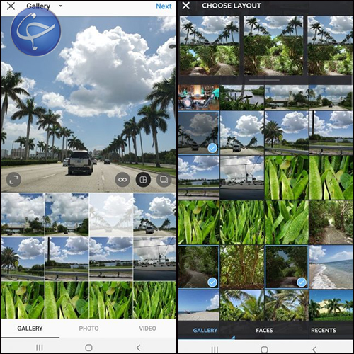 اینستاگرام یک برنامه جانبی به نام Layout دارد که در آن میتوان کلاژهای شخصی ایجاد کرد و در خود اینستاگرام یا دیگر شبکههای مجازی به اشتراک گذاشت، با نصب این برنامه یا لمس گزینه collage هنگام انتخاب یک تصویر به محیط Layout منتقل میشوید، پس از دسترسی به صفحه چیدمان، حالتهای مختلف کلاژ با انتخاب پنل، اندازه و ترتیب آنها به نمایش درمیآید، همچنین گزینههای حالت آینه، چرخاندن تصویر و موارد دیگر نیز در دسترس هستند.