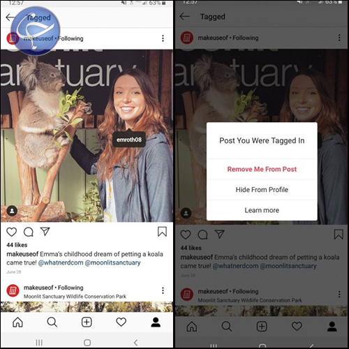 گاهی اوقات پیش میآید که دوستانتان مدام شما را در تصاویر ارسالی خودشان تگ میکند، اگر از این کار خوشتان نمیآید خبر خوب این است که با روش زیر میتوانید تگ خودتان در تصاویر ارسالی دیگران را حذف کنید، برای این کار کافیست که بر روی تصویر مورد نظر رفته و تگ خودتان را لمس کنید، با این کار دو گزینه Remove Me From Post و Hide From Profile مواجه میشوید، با انتخاب Remove Me From Post تگ شما از آن تصویر کاملا حذف میگردد اما با انتخاب گزینه Hide From Profile تگ شما حذف نخواهد شد و تنها از بخش تصاویر تگ شده در حساب کاربریتان پاک میشود، حال انتخاب با خودتان است که از کدام گزینه استفاده کنید.