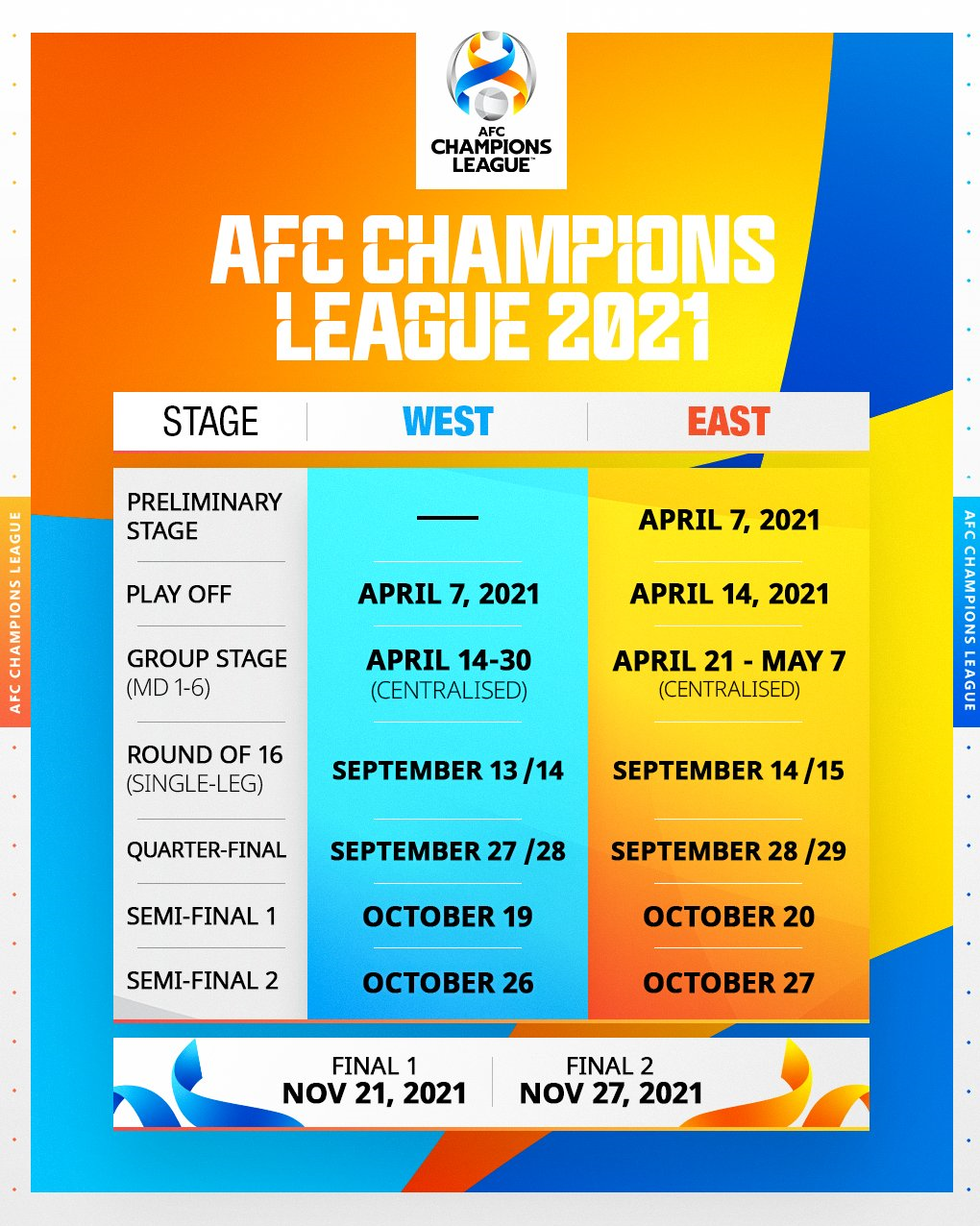 زمان بندی بازی های لیگ قهرمانان آسیا ۲۰۲۱ به به شرح زیر است: