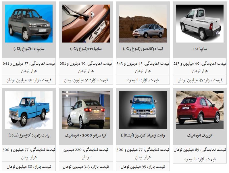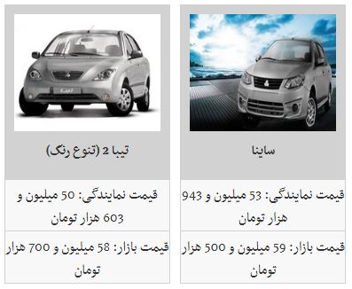 همچنین در بازار محصولات سایپا ؛ ساینا با مبلغ ۵۹ میلیون و ۵۰۰ هزار تومان، سایپا ۱۵۱ با مبلغ ۴۵ میلیون تومان، کیا سراتو ۲۰۰۰ - اتوماتیک با مبلغ ۳۱۳ میلیون تومان و سایپا ۱۳۱ (تنوع رنگ) با مبلغ ۴۶ میلیون تومان خرید و فروش شد.