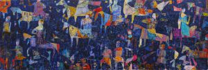 نقاشیهای درخشانی سطوح وسیع و بزرگی از رنگهای درخشان است که در آن ادبیات و نقاشی به هم گره میخورد. دلبستگی نقاش به تأثیرات نوستالژیک تاریخ سرزمین مادری، سبب شده تلاش کند دستاوردهای کهن هنر ایران زمین را در قالب و هیاتی نو و امروزی بازآفرینی کند. بر خلاف نگارگری ایرانی، این آثار در ابعاد بزرگ و با بافت غلیظ در دو یا سه لت و یا بیشتر به اجرا درمیآیند که البته رنگ نقش عمدهای را در آن باز میکند.